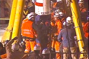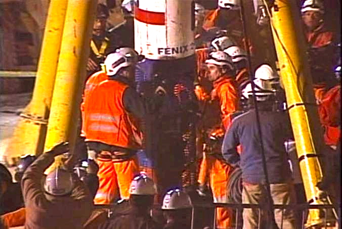 On October 9th a giant U.S. operated drill finally bored a man-sized hole through the earth, through which a specially designed capsule named Phoenix could be lowered. It wasn’t until October 13 and 14, after 69 days of being trapped, that the miners were brought up through the shaft one miner at a time.