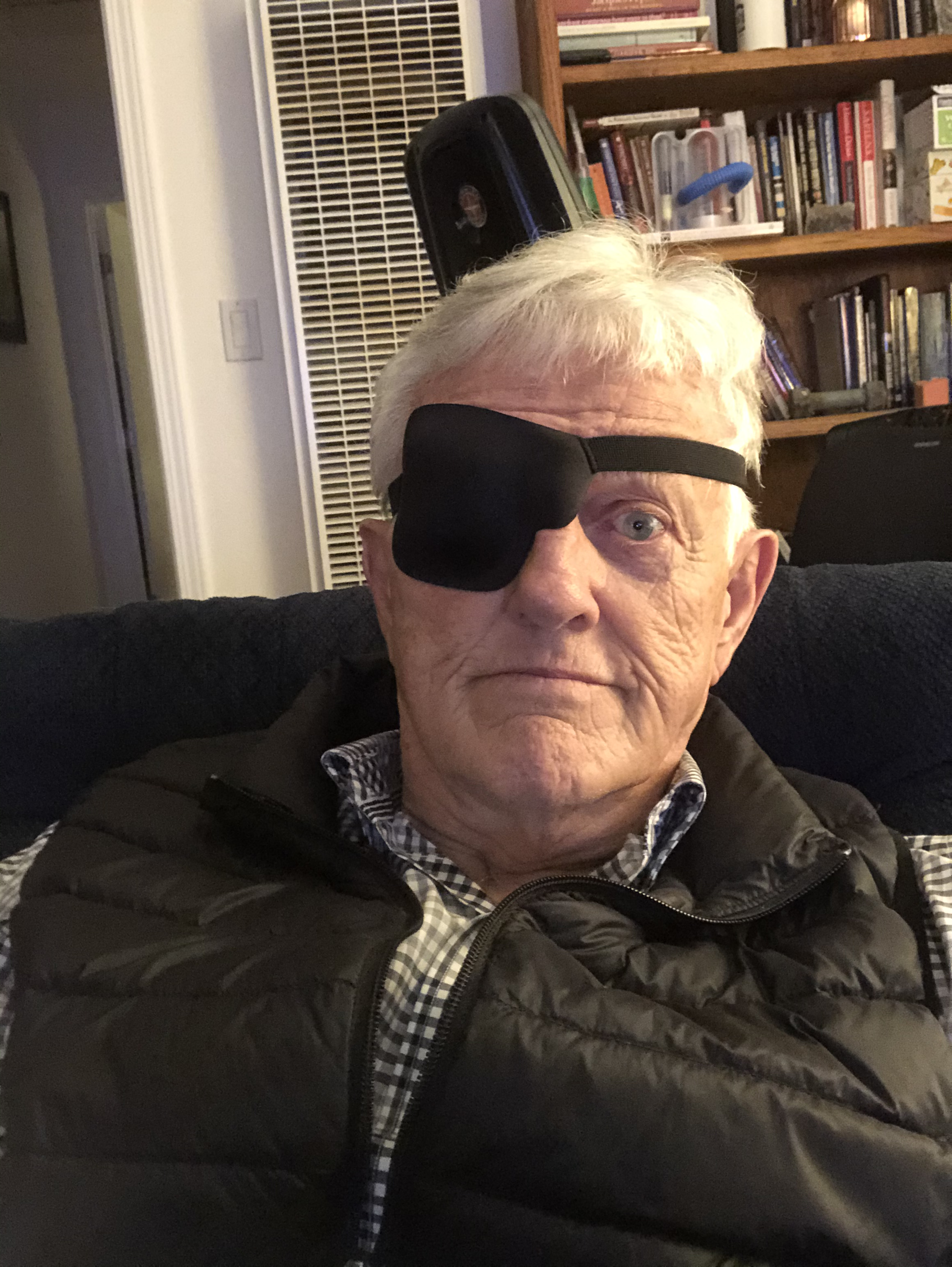 Before the surgery that followed in October, I had to block one eye to be able to read or drive. I tried different things and looked at different times like a one eyed Lone Ranger or some kind of a pirate. Sometimes I scared Sharon and sometimes when I looked in the mirror I scared myself.