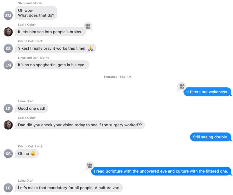 I jokingly told our children that the Star Wars looking patch to protect my eye after my second surgery was to filter out wokeness. That’s what the Gospel does. It filters out false ideologies and allows you to see spiritual reality. That’s what we are doing in our Divine Expedition training with Global Training Network. That’s what we are doing in the Bible study I lead called the NO BS BS.