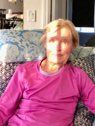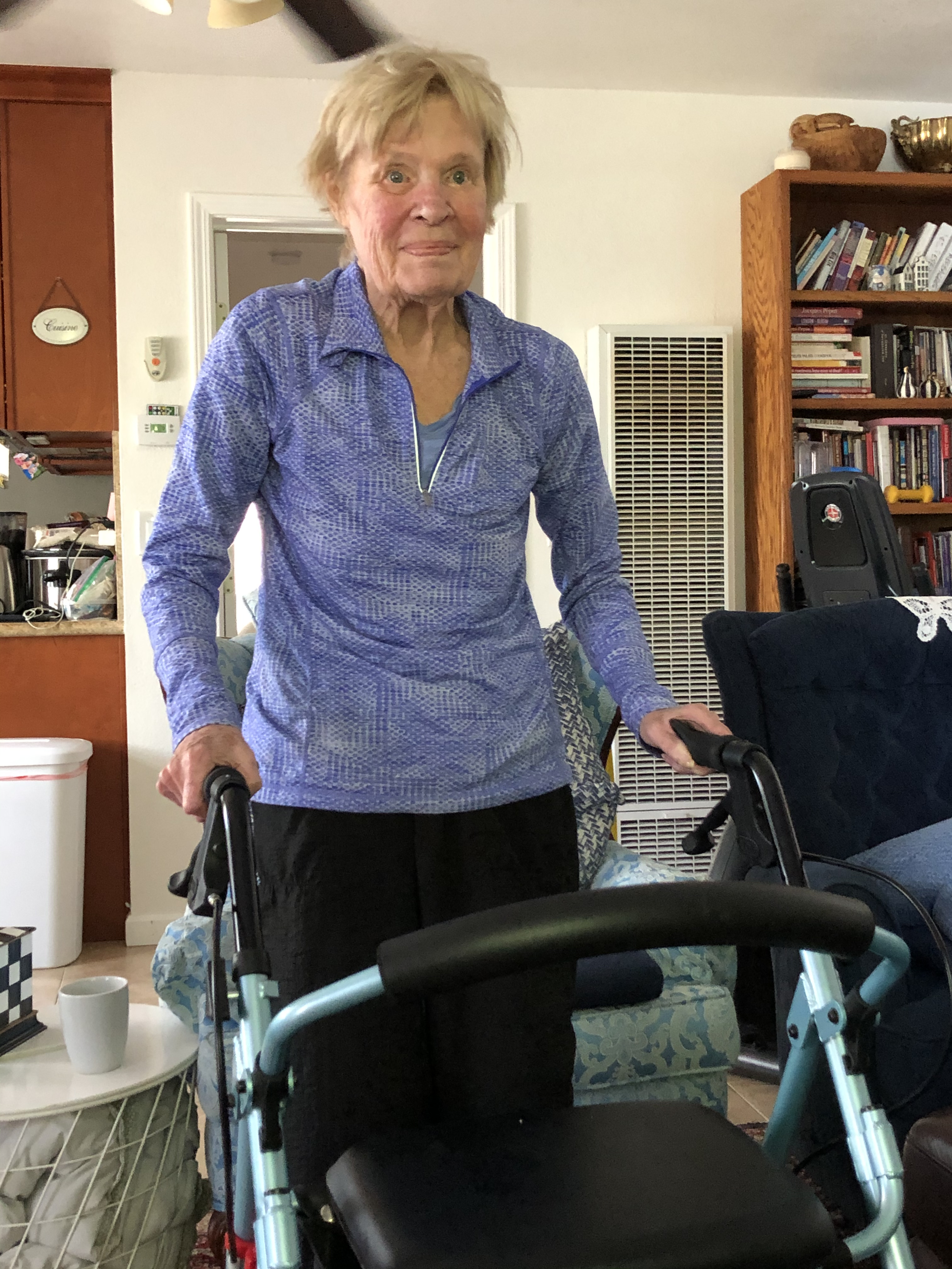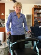 Sharon has been making progress doing therapy exercises each morning and riding a recumbent cycle each afternoon. Here she is doing some stand-up exercises.