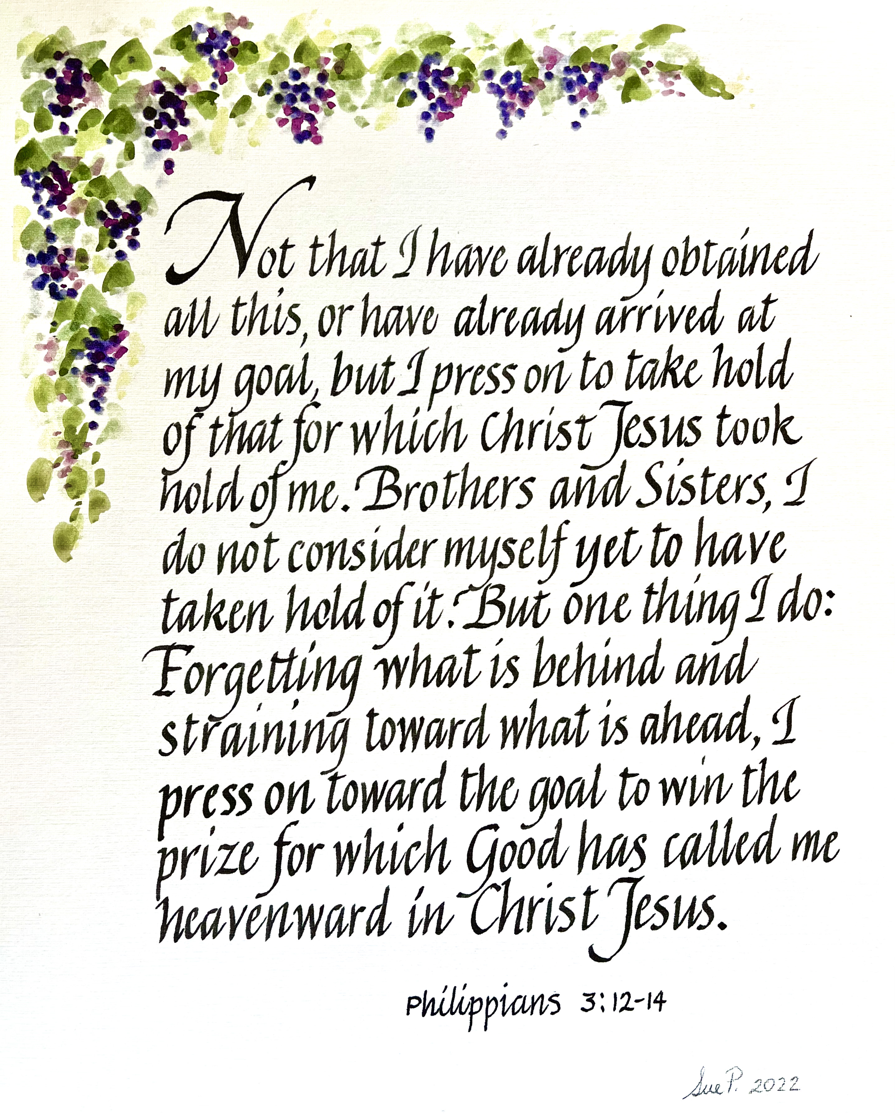 Another long-term friend, Sue Paulson, sent me the following calligraphy that spurs me on: