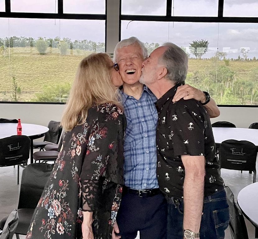 It has been my privilege to connect with so many in the retreat photo in past years, none longer than Pete and Jane. They were part of the church we started in Amsterdam. After Pete’s job took him back to England, then Indiana, and finally to Brazil, I was able to visit them in each place, and then coach them to start a church in Sāo Paulo. After Sharon and I joined Global Training Network, Pete and Jane became part of our Divine Expedition team and leadership in Brazil. At the end of the retreat they ambushed me with a kiss.