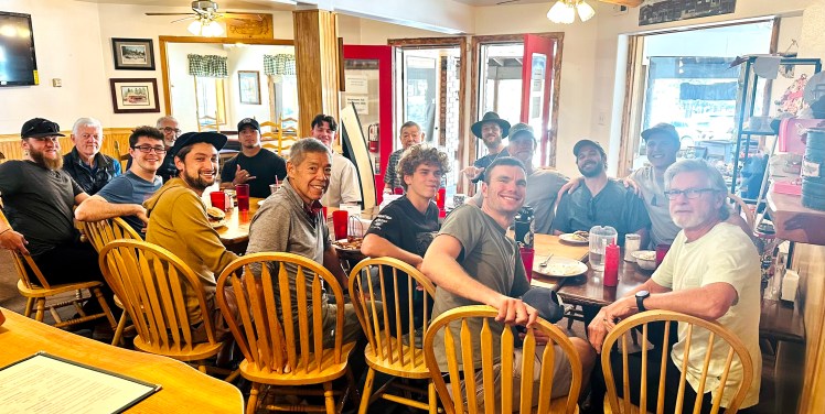 At the end of the time, my nine grandsons, friends (and NO BS BSERS) Doctor Sharo, and Vince and Vince’s clan gathered together for lunch at a near by restaurant. While lunch was being prepared, each of the men pictured below shared a highlight of how God spoke to them and deepened their relationship with Christ and each other. That was my greatest highlight!