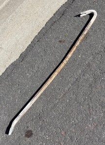 I found some of garden tools…but no handles were left on them, totally burned and unusable. Then I found a treasure: my large crowbar. It survived. You can’t image how happy I was. My crowbar survived! Such a beautiful thing…my crowbar made it through the fire. I didn’t have to search anymore. I found one thing. A crowbar! Yeah! Who doesn’t need a crowbar!
