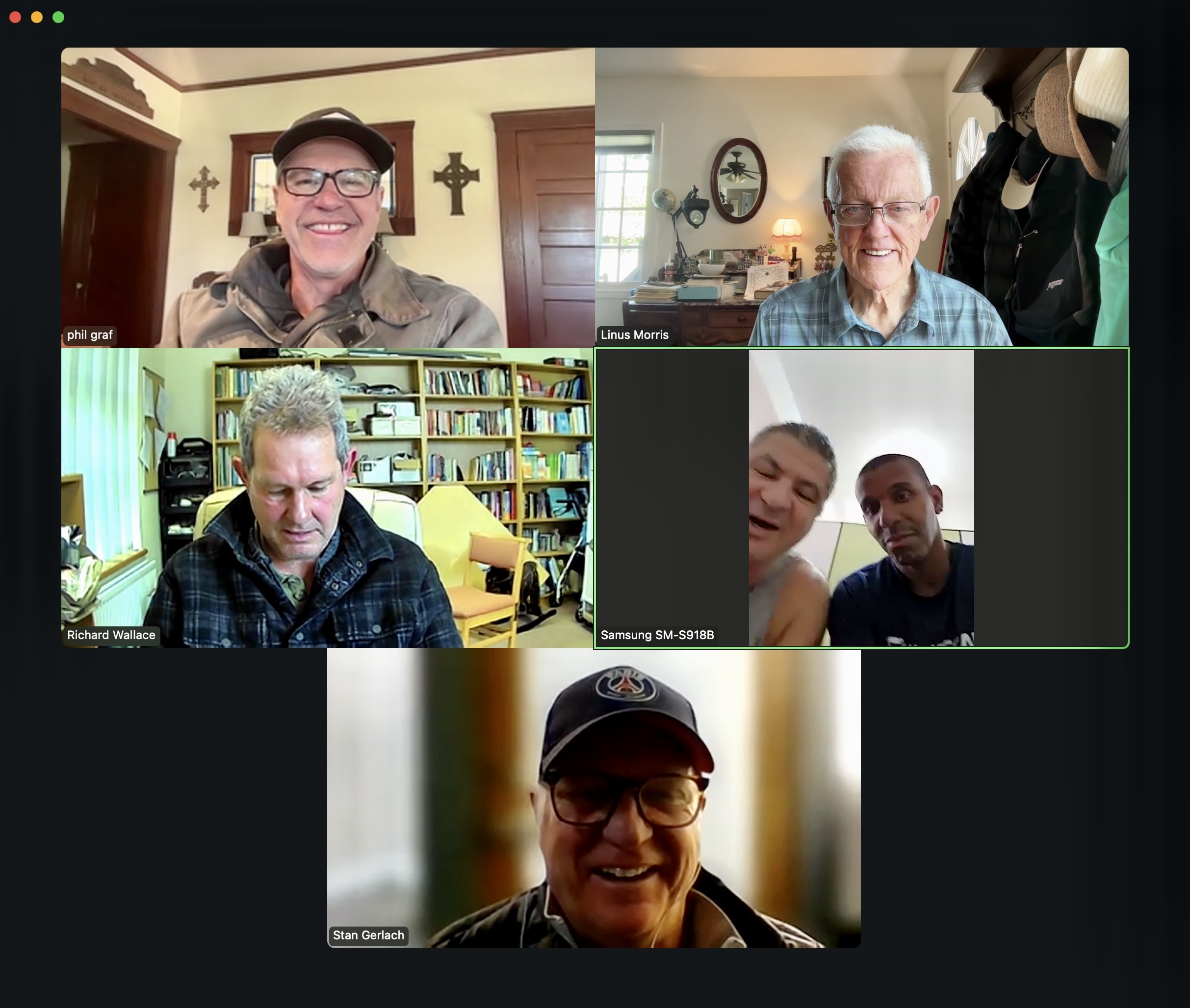 Counter clockwise, the photo on the left is of Phil Graf, Jane Hawkins (in Brazil), fellow American Stan Gerlach, British Richard Wallace  (who grew up in Africa, lives in England, and is married to a Dutch woman), Samir (Sammy)-Mohammed-Salim-Pedro-Diab (born in the Middle East to a muslim family, but grew up and became Christian in Brazil) … and me.